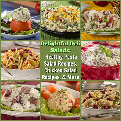 There are so many reasons why we love healthy deli salads. For starters they’re quick and easy. Just gather some ingredients, stir, and let all the goodness blend together. (Remember, usually, the longer you let it sit, the better it tastes!) We call that a whole lot of yum for just a little work. Make a recipe a day ahead of time and you’ll have the perfect lunch entrée, or side dish waiting in your fridge. And once the meal is over, don’t forget to store the leftovers in an airtight container so you can enjoy what's left for the next 3 to 5 days! Yup, we love deli salads because they’re easy make-ahead dishes that pair great with any meal, and you can enjoy them for days after. Sounds good, right? That’s why we came up with our latest free eCookbook, Delightful Deli Salads: 27 Healthy Pasta Salad Recipes, Chicken Salad Recipes & More! This cookbook is full of lightened-up deli salad recipes, for everything from healthy tuna salads to low-carb coleslaw and cauliflower salad recipes, that are creamy, flavorful, and good-for-you!
