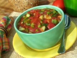 I prefer my veggies run thru the blender before chilling and serving. Very tasty combination. E.